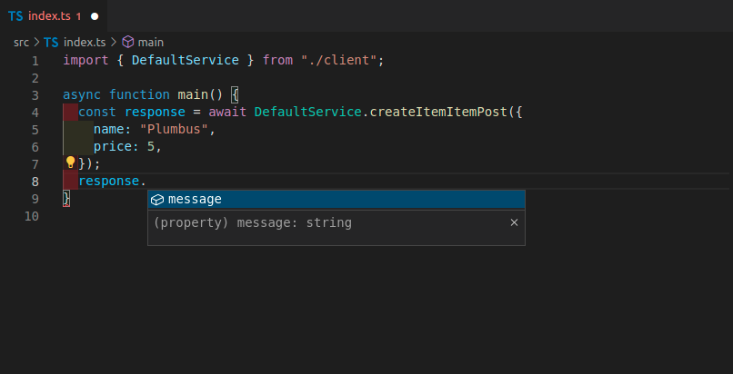 生成新的客户端之后,你现在将拥有清晰的方法名称,具备自动补全错误提示等功能: